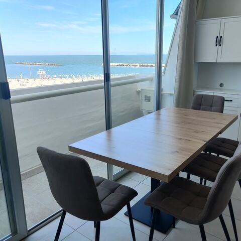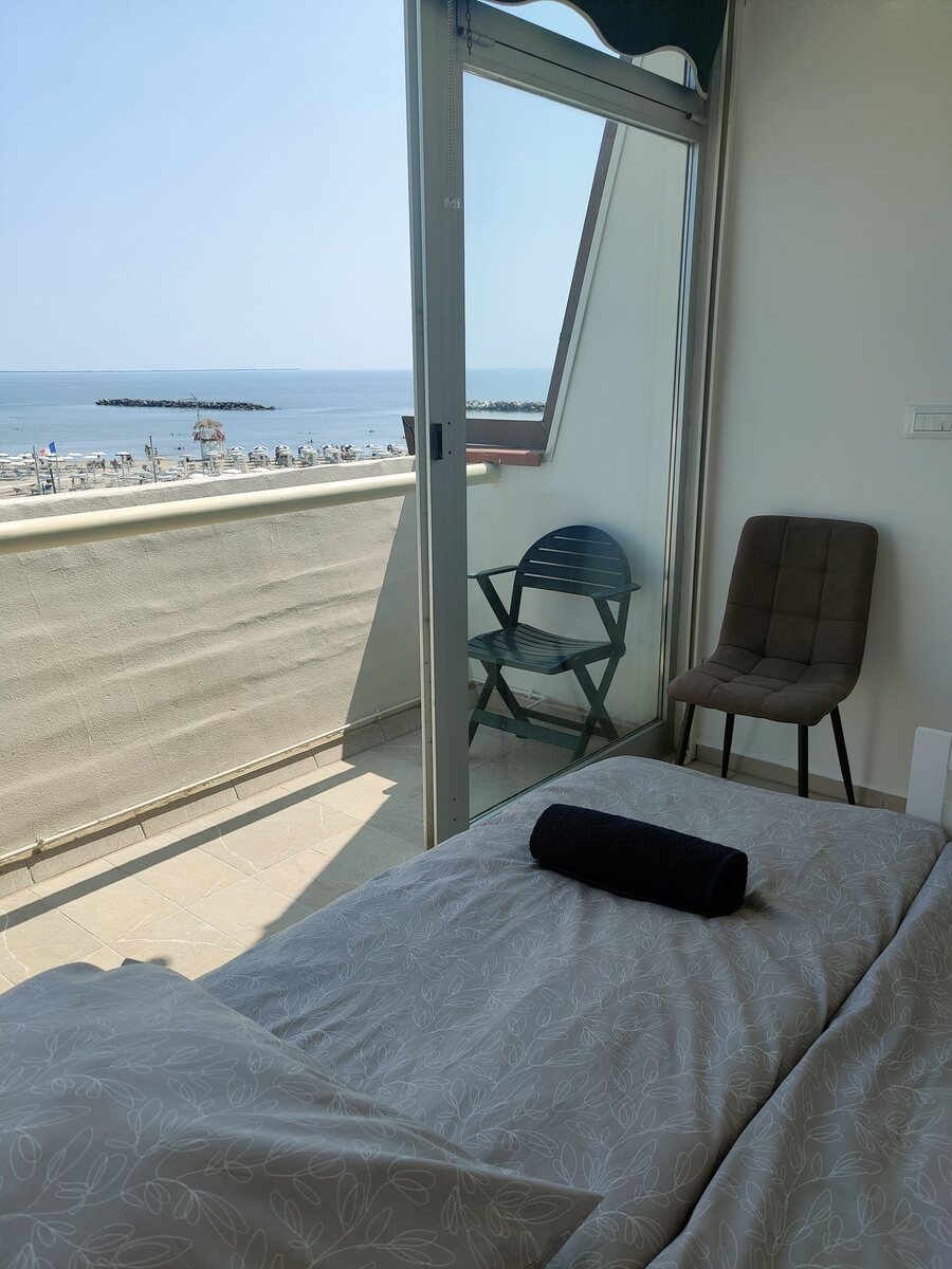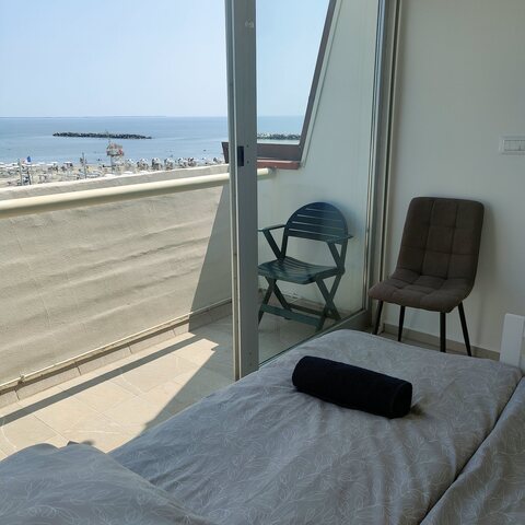 A nagy erkélyablakokon át gyönyörködhetsz a tenger látványában, ezeket kinyitva a szobában hallhatod a tenger hullámzását.