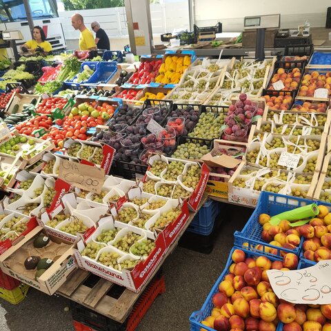 Fantasztikus volt, igazi olasz forgatagba cseppentünk. Tejtermékek, sonkák, felvágottak, zöldség, gyümölcs, ruhák, cipők, izék és bigyók… mindent is lehetett kapni.