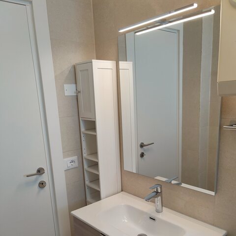 Fontos megemlíteni, hogy az egész lakásban új, minőségi kapcsolók és konnektorok vannak. Ezek európai, magyar szabványúak, ezért ide nem szükséges olasz csatlakozó átalakítót hozni. Konnektorokat nagyon sok helyre szereltünk fel.