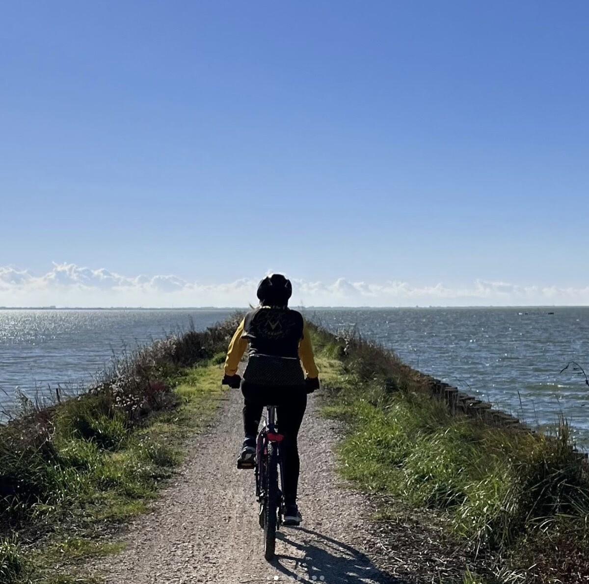 A szomszéd erdőben halad a kerékpárút, amin Velencéig tudsz tekerni. A tengerparti kerékpárutat mindig megcsodálom, a hordalékfából készült szobrok egy helyi művész alkotásai. Az erdőben békés őzekkel és szarvasokkal találkozhatsz.