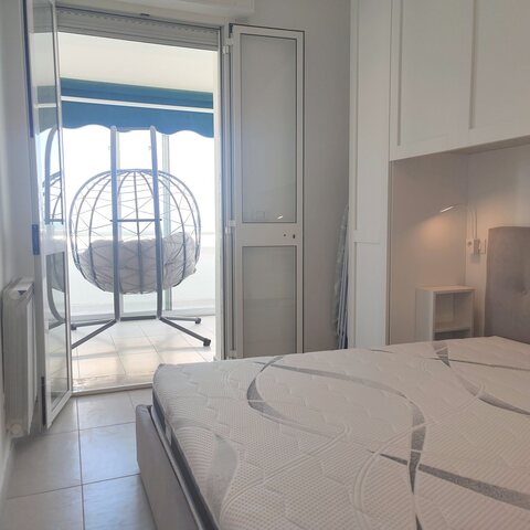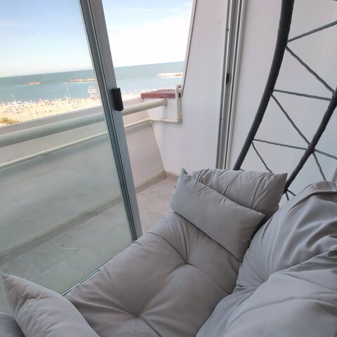 A nagy erkélyablakokon át gyönyörködhetsz a tenger látványában, ezeket kinyitva a szobában hallhatod a tenger hullámzását.