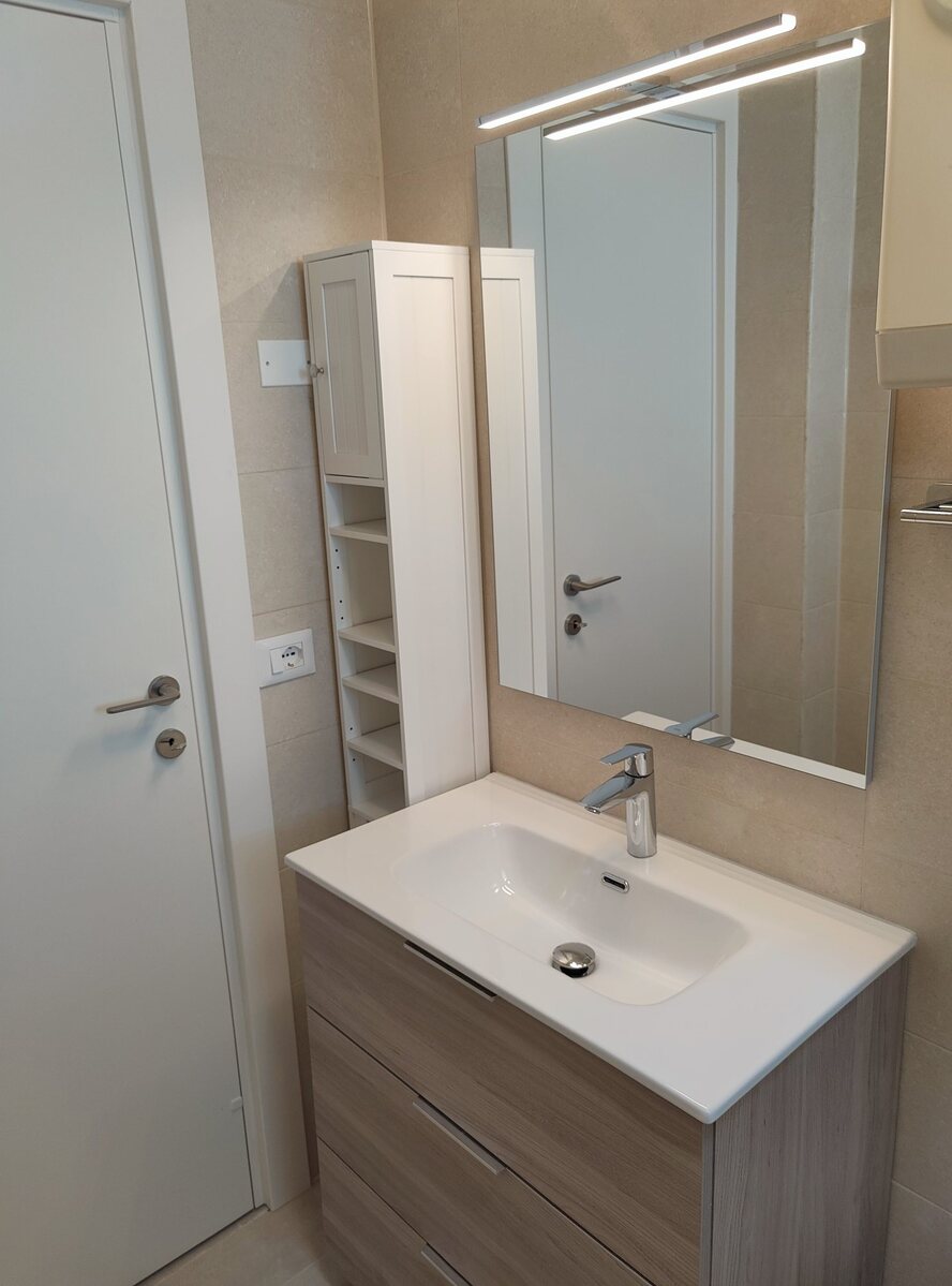 Fontos megemlíteni, hogy az egész lakásban új, minőségi kapcsolók és konnektorok vannak. Ezek európai, magyar szabványúak, ezért ide nem szükséges olasz csatlakozó átalakítót hozni. Konnektorokat nagyon sok helyre szereltünk fel.